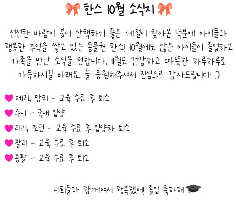 2023년 10월 사단법인 한스 1탄 > 활동소식